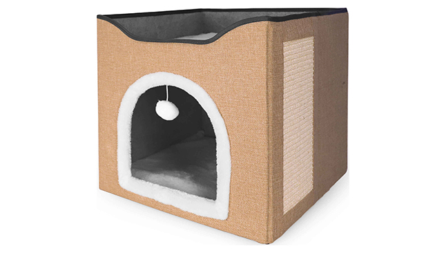 Os arranhadores com túneis e esconderijos para explorarem ou descansarem também são excelentes opções. Certifique-se de que o arranhador tem materiais resistentes, como sisal natural, tecido firme ou madeira compacta, para garantir que é seguro e dura mais tempo.