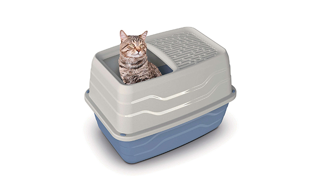 - Caixa de Areia para Gato Spring — Bribon, disponível em castanho, cinza e azul, é também ideal para gatos que apreciam um espaço mais reservado.