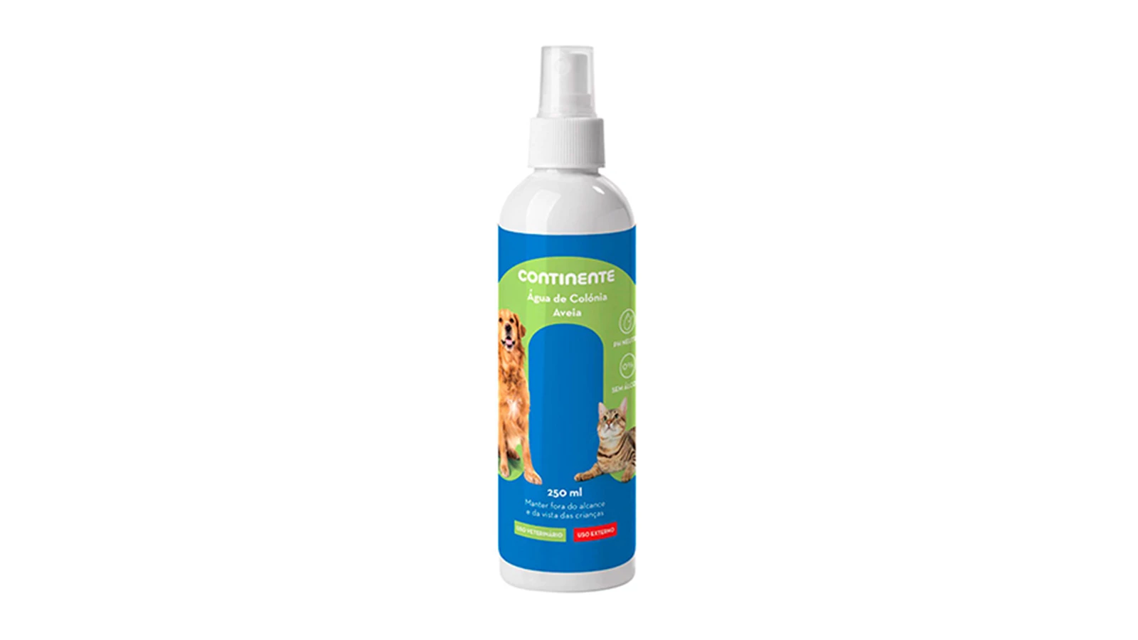 Uma água de colónia ajuda a manter a pele e o pelo limpos e com um cheiro agradável. A água de colónia para cão e gato do Continente tem uma fragrância de aveia natural, e a sua fórmula é isenta de álcool e parabenos, com pH neutro.