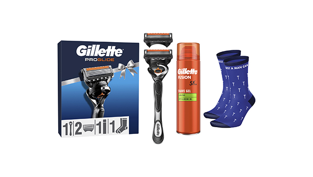 Se procura presentes práticos, que tal oferecer este Coffret Máquina de Barbear ProGlide da Gillette? O conjunto traz tudo o que é preciso para um barbear confortável e ainda inclui um extra simpático – umas meias.