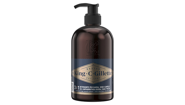 O Gel de Limpeza King C. 3 em 1 da Gillette é uma solução prática para o cuidado diário. É um 3 em 1, pois limpa a pele, a barba e o cabelo, deixando uma sensação de frescura e conforto. A sua fórmula contém água de coco, óleo de argão e óleo de abacate, que ajudam a manter a pele, a barba e o cabelo limpos e revitalizados todos os dias.