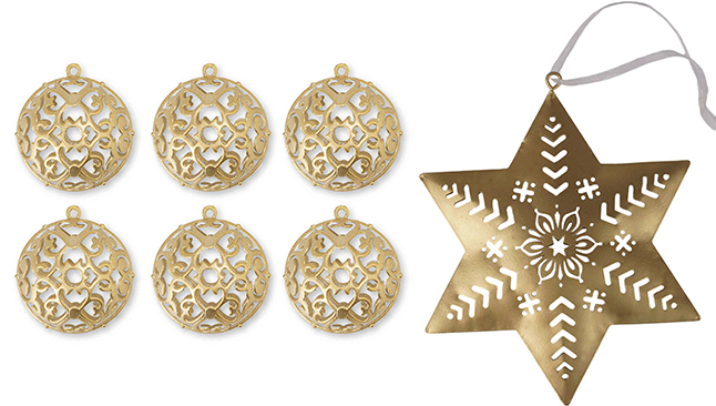 - Conjunto 12 Ornamentos Dourados Kasa: peças finas e luminosas que criam pontos de brilhos estratégicos na árvore.