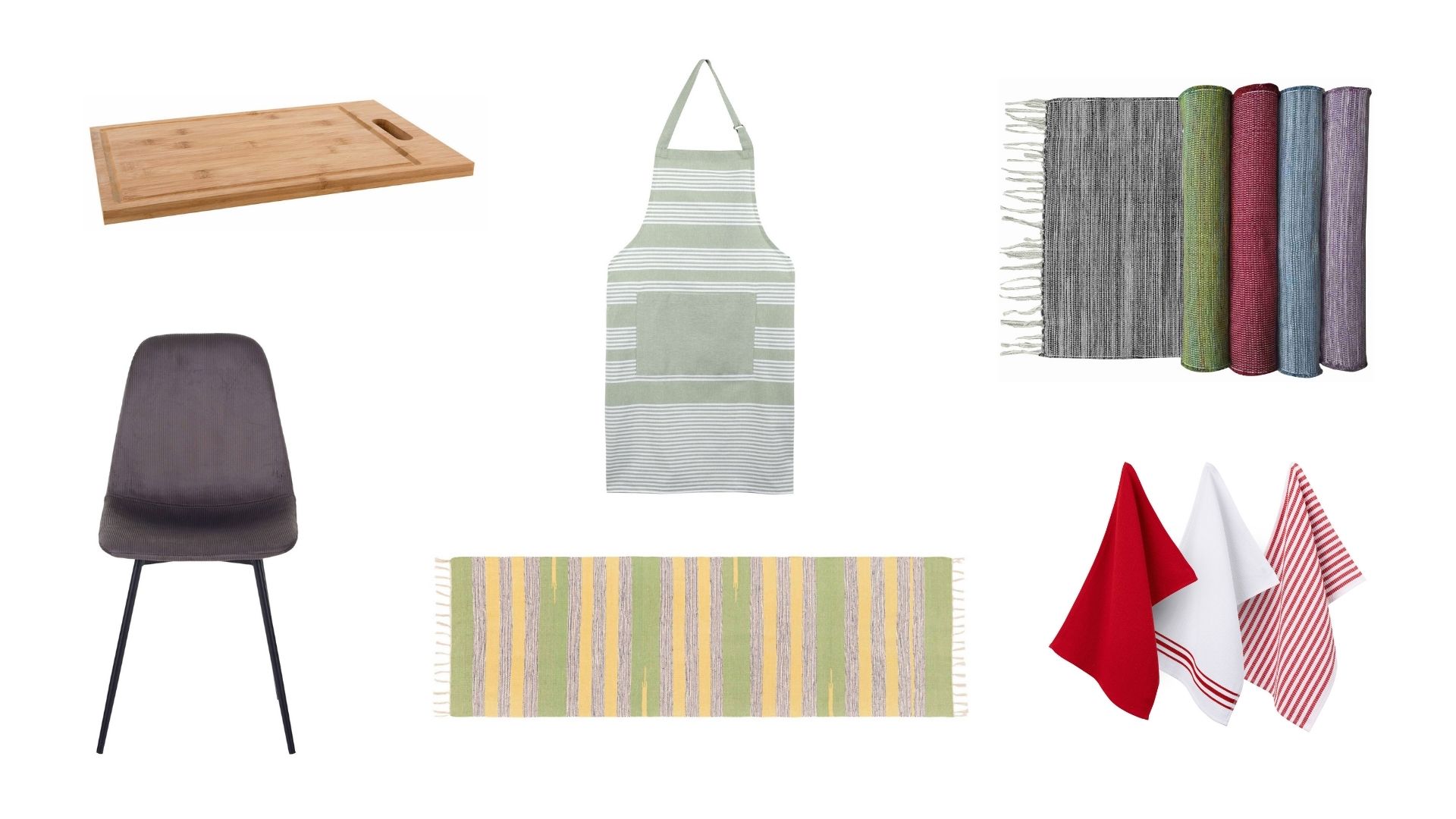 - Panos de cozinha em algodão, práticos para o dia a dia e acrescentam um toque gráfico discreto junto à bancada.