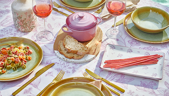 Juntamente com a decoração, o serviço de louça dará outro brilho à mesa e, claro, ao dia. Não se esqueça de conjugar o serviço escolhido com taças e travessas temáticas.