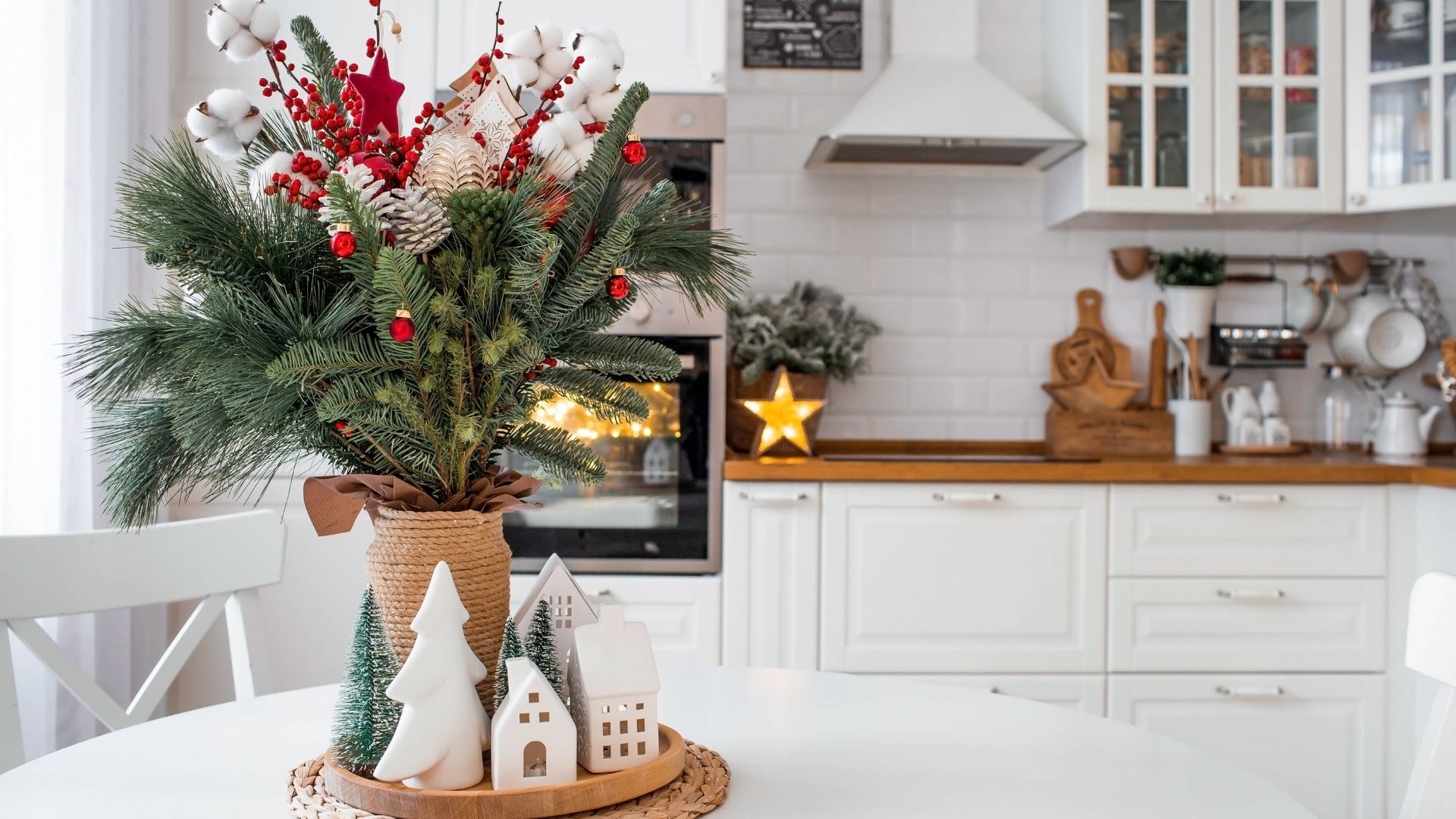 A cozinha também merece brilho natalício. Decore-a com pequenos detalhes que encantam sem comprometer a funcionalidade. O segredo? Criar pontos visuais, aromáticos e afetivos, com toques naturais e um piscar de olho às tradições: