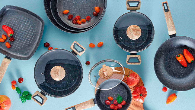 A gama Ceramic Stone da KASA inclui frigideiras, caçarolas, grelhadores, entre outras opções, com um revestimento cerâmico antiaderente.