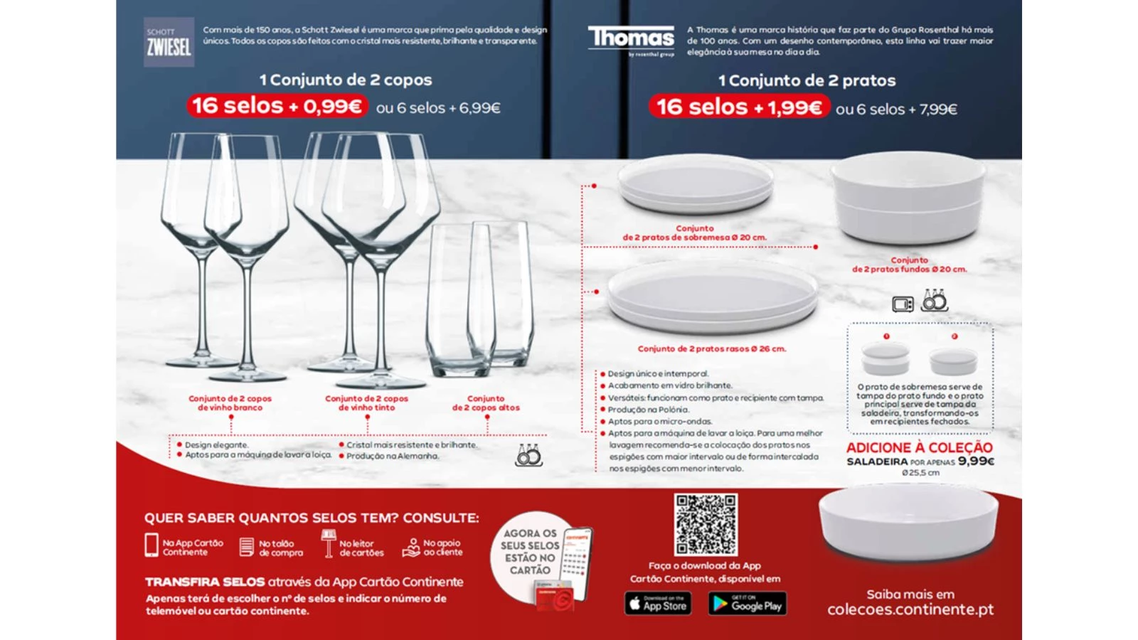 4.3 Os selos servem para os Clientes trocarem e adquirirem por um preço extraordinariamente baixo, a gama de artigos das Marcas “Schott Zwiesel” e “Thomas by Rosenthal”, selecionadas exclusivamente para a Campanha e constantes do Anexo I ao presente Regulamento.