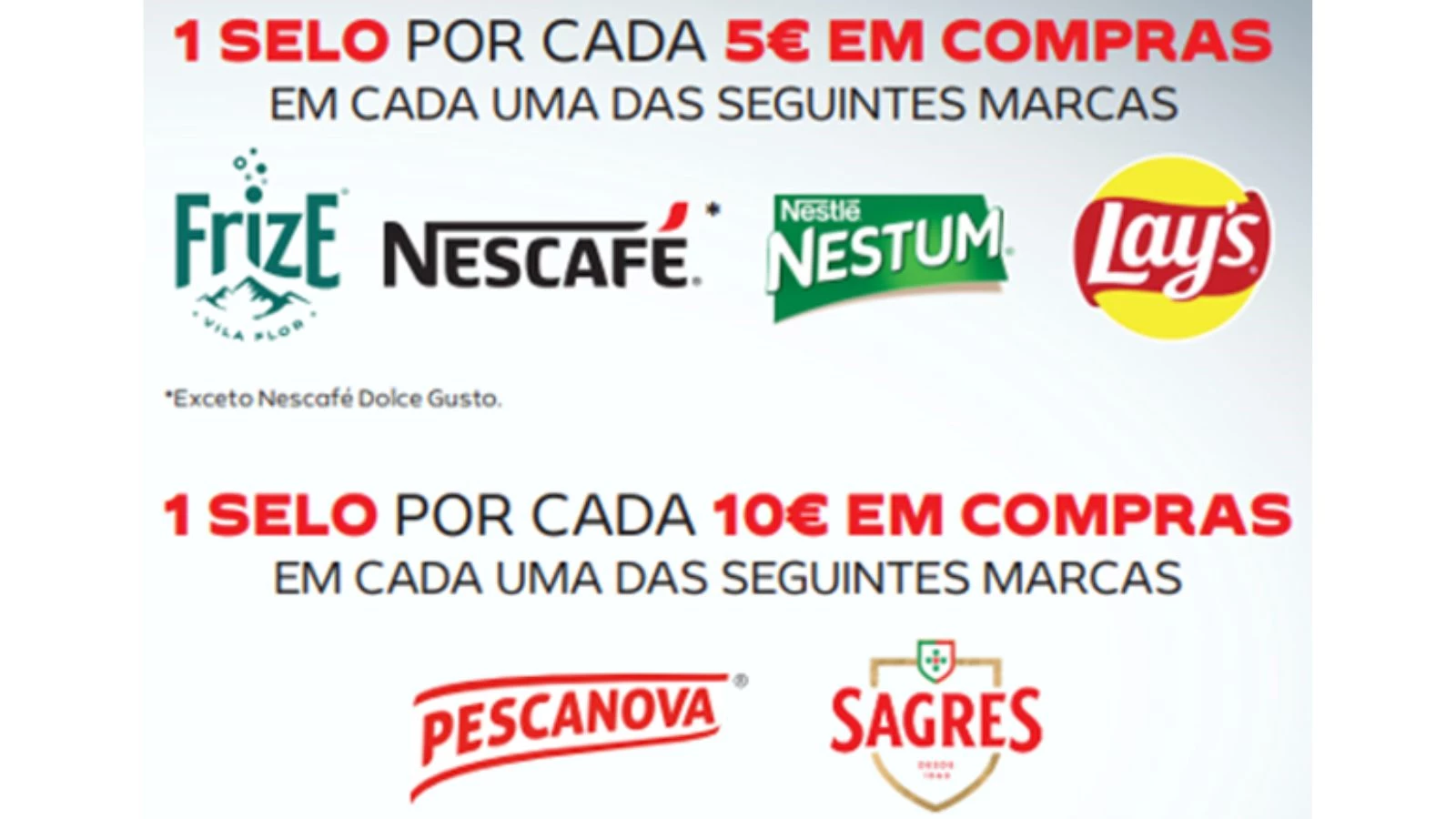 4.1.2 Durante toda a vigência da Campanha, por cada 5€ (cinco euros) em compras associadas ao Cartão Continente, efetivamente pagas, numa das Lojas supra indicadas, em artigos de cada uma das seguintes marcas: “Lay’s”, “Nestum”, “Frize” e “Nescafé” (exceto produtos marca Nescafé Dolce Gusto), selecionadas exclusivamente para a Campanha, e que se encontram discriminadas no Anexo II ao presente Regulamento.