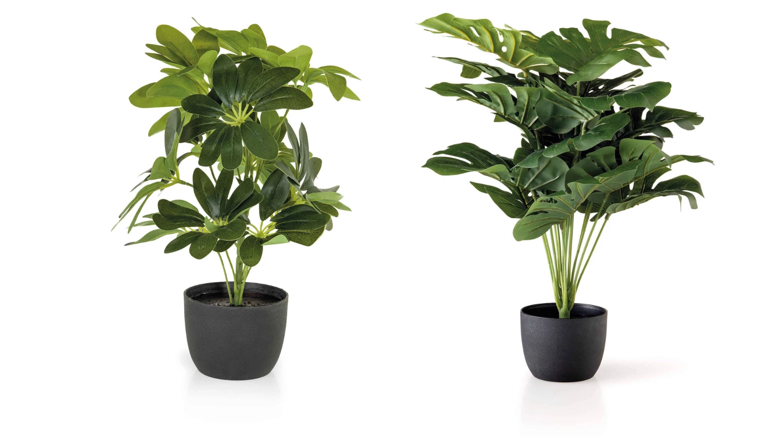 Estas duas opções de plantas artificiais com vaso da marca KASA são excelentes exemplos. A primeira planta tem 40cm de altura e a segunda planta tem 49cm.