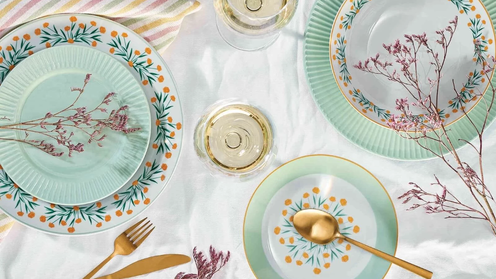 Para quem procura um serviço de mesa em tons neutros, a coleção Inbloom da KASA é perfeita. Este conjunto está disponível na versão branco floral e com padrão Vichy que podem ser combinados com peças lisas (sem padrão) em tons verde, amarelo e rosa pastel.