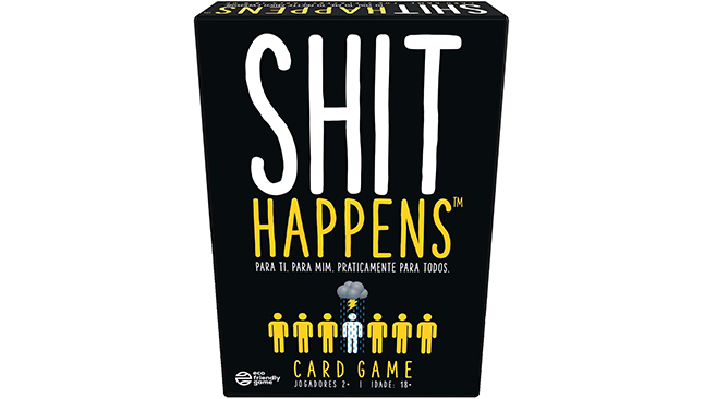 O Shit Happens é um jogo de cartas onde os jogadores classificam uma série de desgraças por ordem de gravidade. Ter queimaduras de terceiro grau é melhor ou pior do que ver o pai nu? É pior do que deixar o telemóvel cair na sanita? O objetivo é classificar corretamente as cartas para as ganhar.