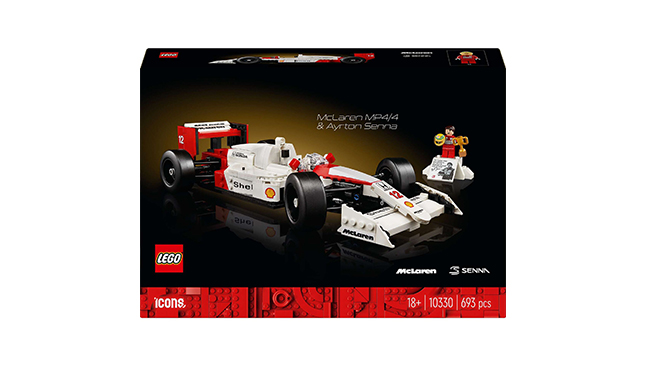 O set LEGO Icons McLaren MP4/4 e Ayrton Senna (10330) para adultos é uma réplica à escala de um dos carros de F1 mais bem-sucedidos de sempre. Este modelo inclui detalhes precisos, que captam a aparência e sensação do lendário carro de 1988, e uma minifigura de Ayrton Senna para expor.