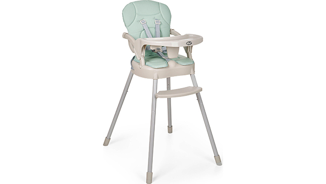 Conta com 9 posições em altura, 3 opções de reclinação, 3 modos de tabuleiro e um apoio para os pés ajustável para melhor ergonomia. É também fácil de limpar e movimentar, graças às 4 rodas giratórias.