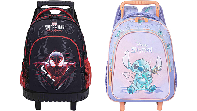 Com diversos compartimentos e acolchoamento nas alças, o Trolley Miles Morales Preto do Spider-Man e o Trolley Hold On Tight Lilás da Lilo & Stitch são mochilas práticas e cómodas que prometem fazer furor entre os mais pequenos aí de casa.