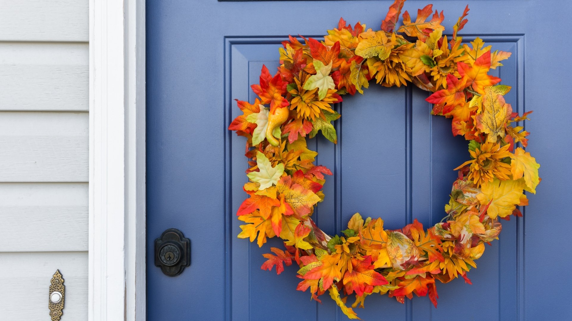 Use ramos secos, folhas coloridas e pinhas para criar uma coroa decorativa. Pode adicionar fitas em tons de laranja, castanho ou dourado e até pequenas abóboras artificiais. É uma forma simples de dar as boas-vindas à nova estação logo à entrada.