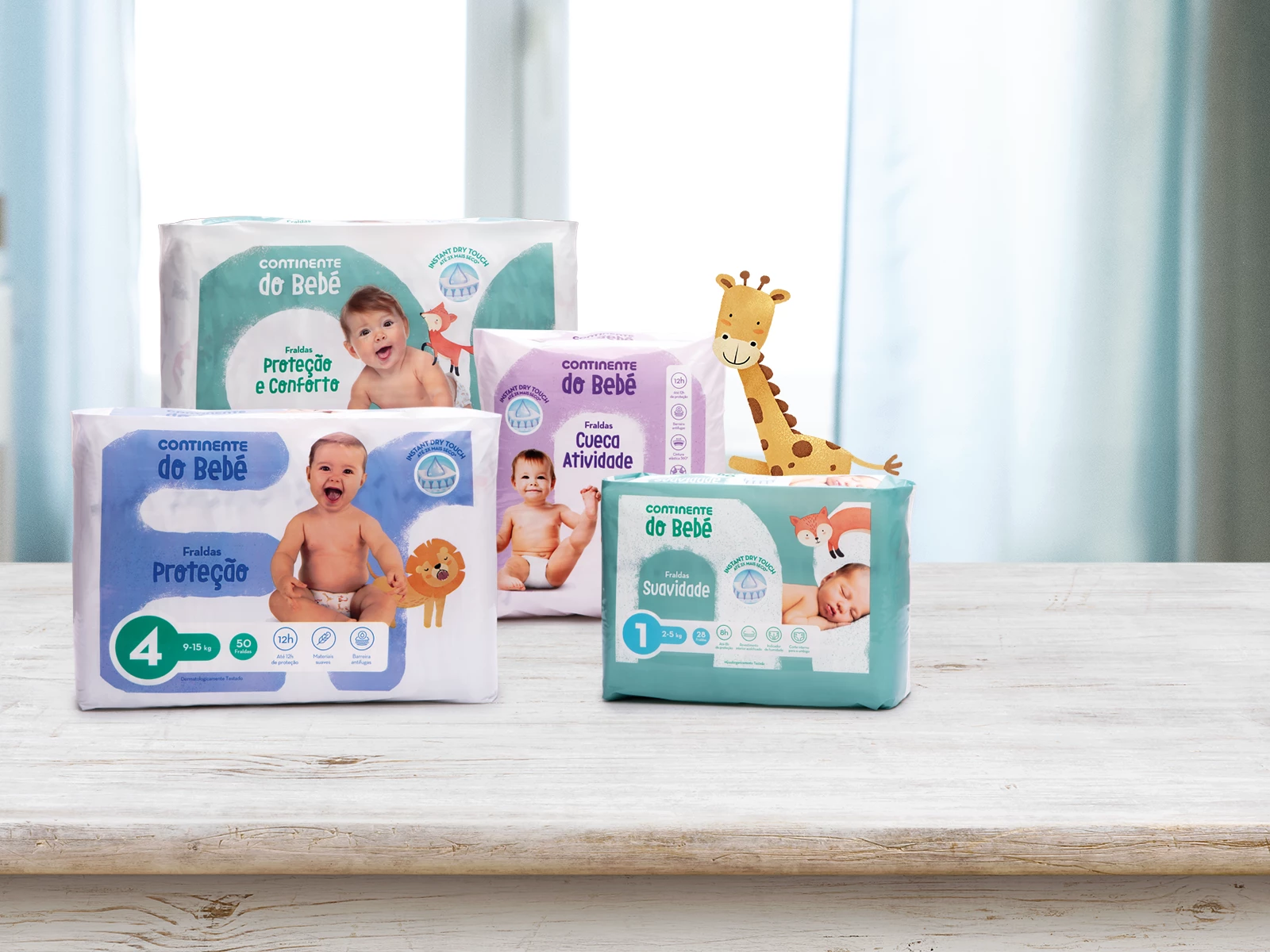 Da alimentação aos cuidados diários, conheça toda a gama Continente Bebé, a um preço pequenino, como eles.