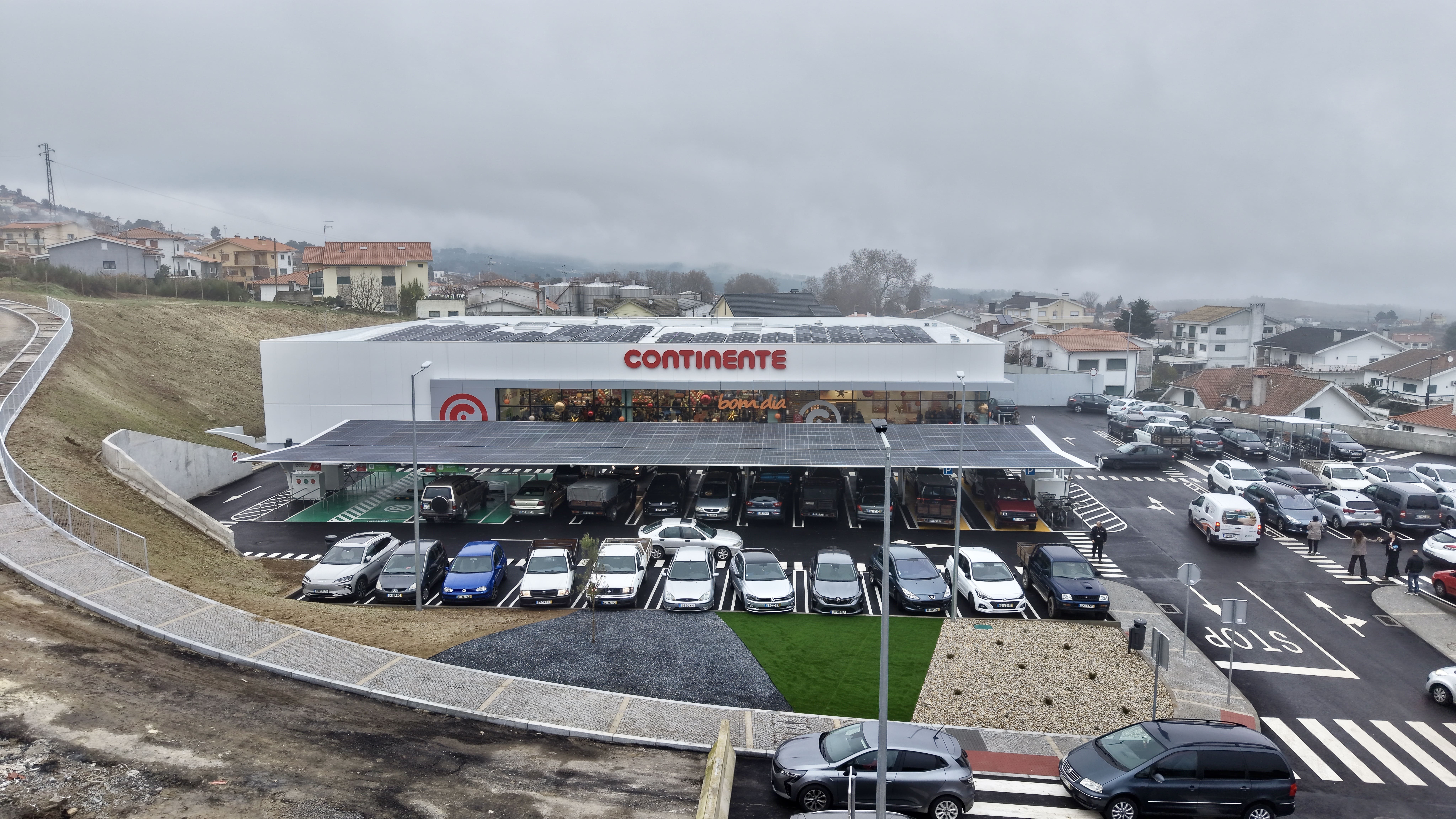 Esta loja Continente disponibiliza um parque de estacionamento a todos os seus clientes com lugares destinados a pessoas com mobilidade condicionada e lugares reservados para famílias.