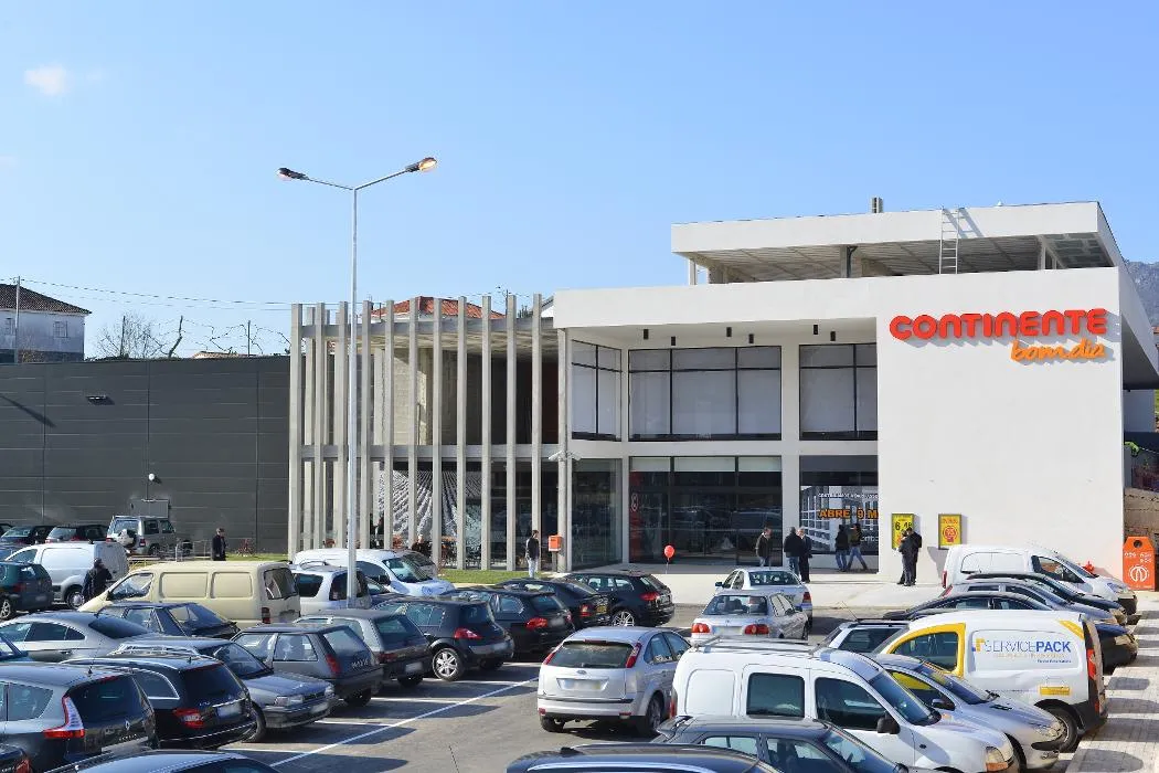 Esta loja Continente disponibiliza um parque de estacionamento a todos os seus clientes com lugares destinados a pessoas com mobilidade condicionada e lugares reservados para famílias.