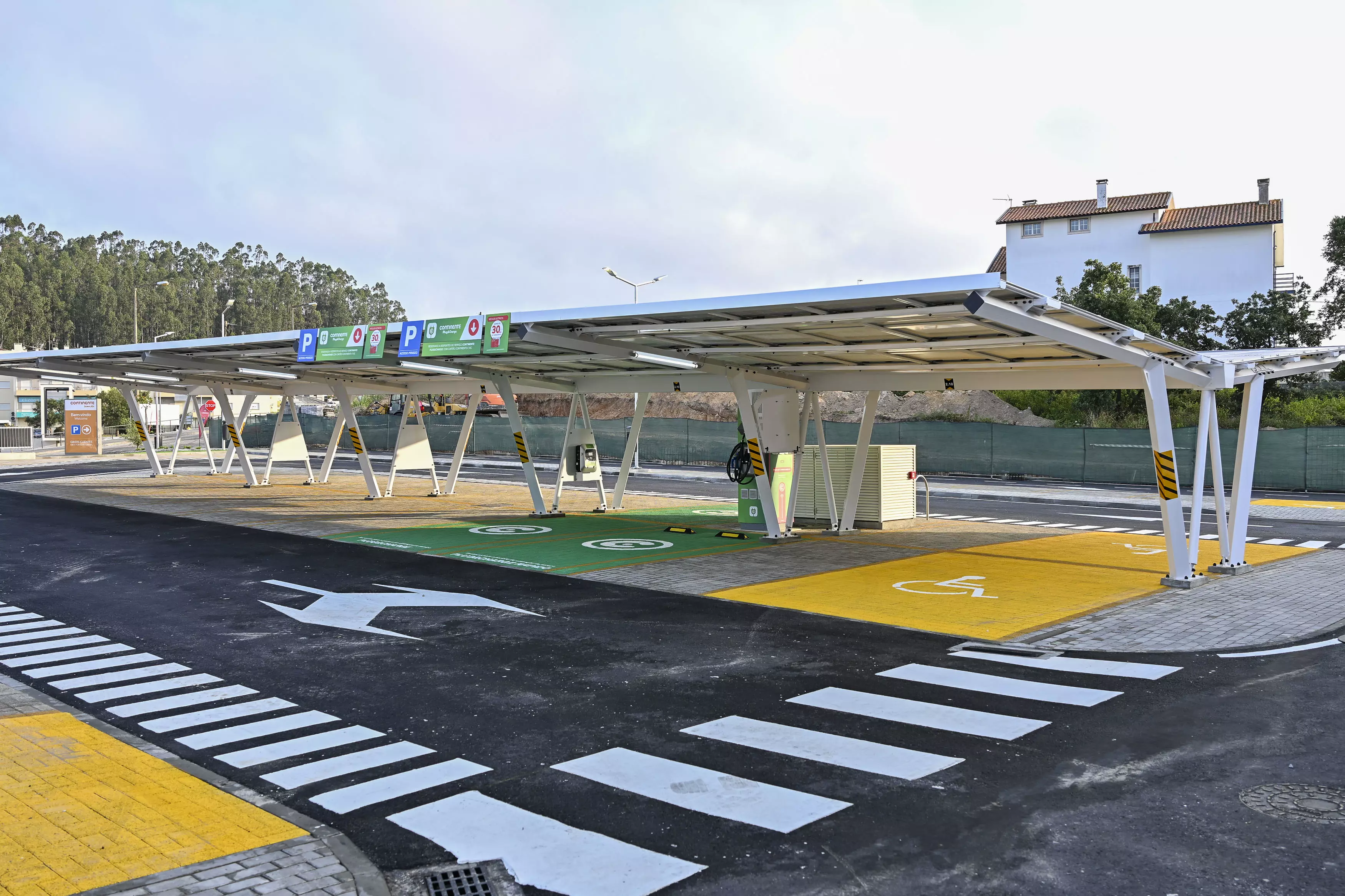 Esta loja Continente disponibiliza um parque de estacionamento a todos os seus clientes com lugares destinados a pessoas com mobilidade condicionada e lugares reservados para famílias.