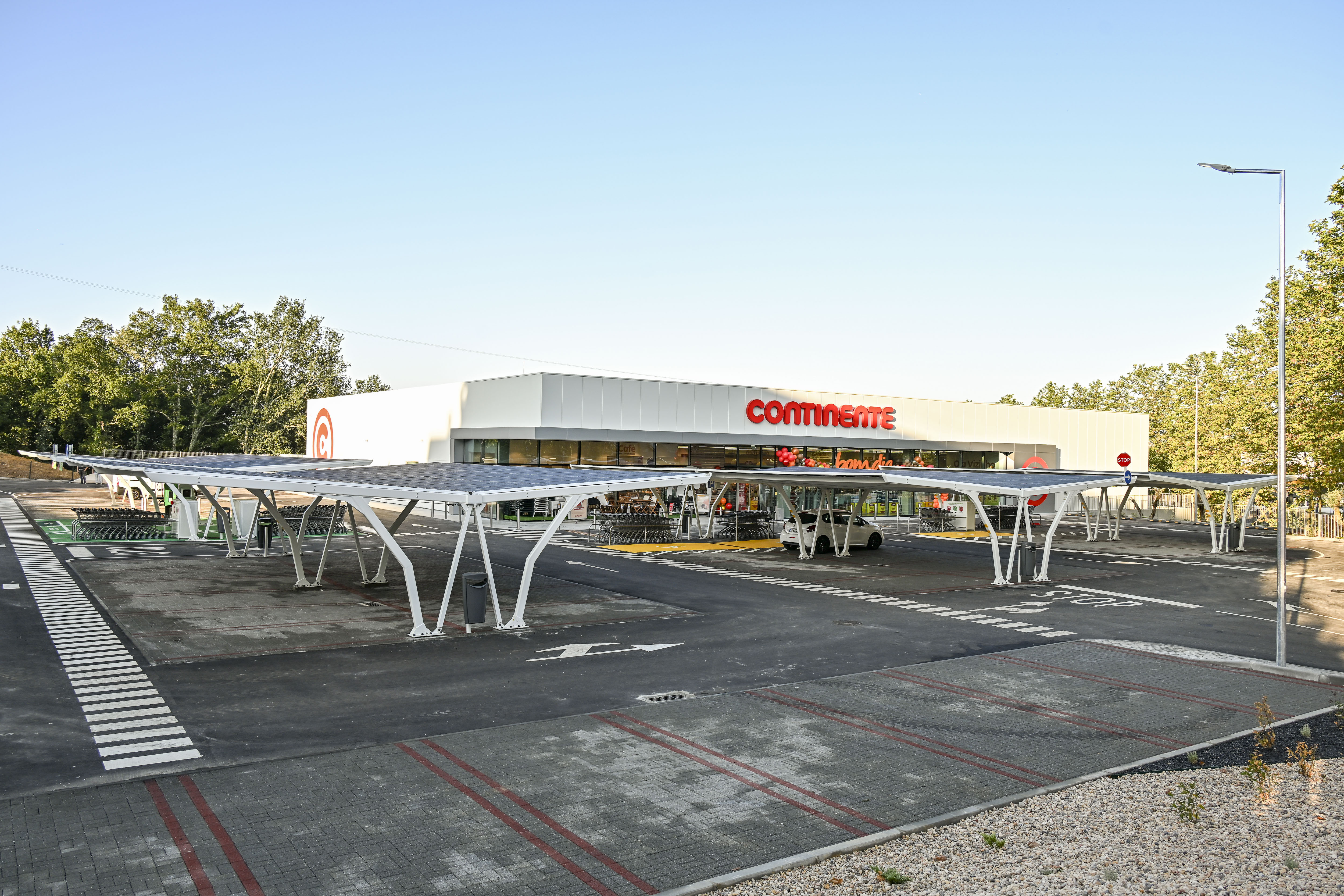 Esta loja Continente disponibiliza um parque de estacionamento a todos os seus clientes com lugares destinados a pessoas com mobilidade condicionada e lugares reservados para famílias.