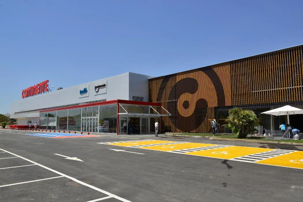 Esta loja Continente disponibiliza um parque de estacionamento a todos os seus clientes com lugares destinados a pessoas com mobilidade condicionada e lugares reservados para famílias.