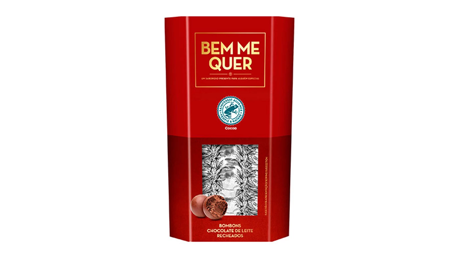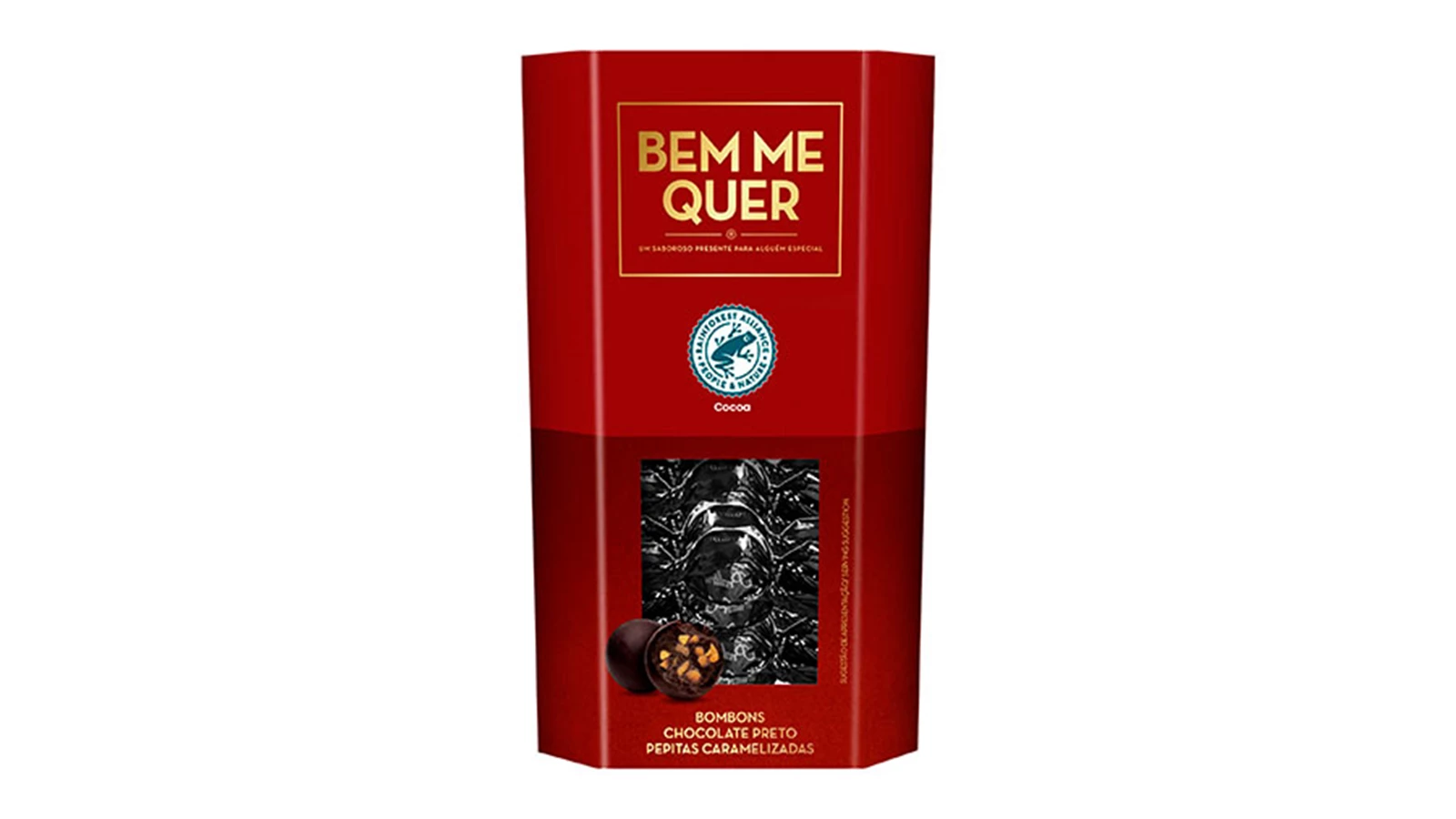 Estes chocolates e bombons Bem Me Quer, à venda em exclusivo no Continente, possuem certificação Rainforest Alliance – People & Nature. Este selo de sustentabilidade garante um fornecimento sustentável e de qualidade, assente nos pilares ambientais, sociais e económicos. Isto significa que o cacau utilizado respeita as normas e padrões de cultivo, proteção de florestas, comunidades locais e ambientais.