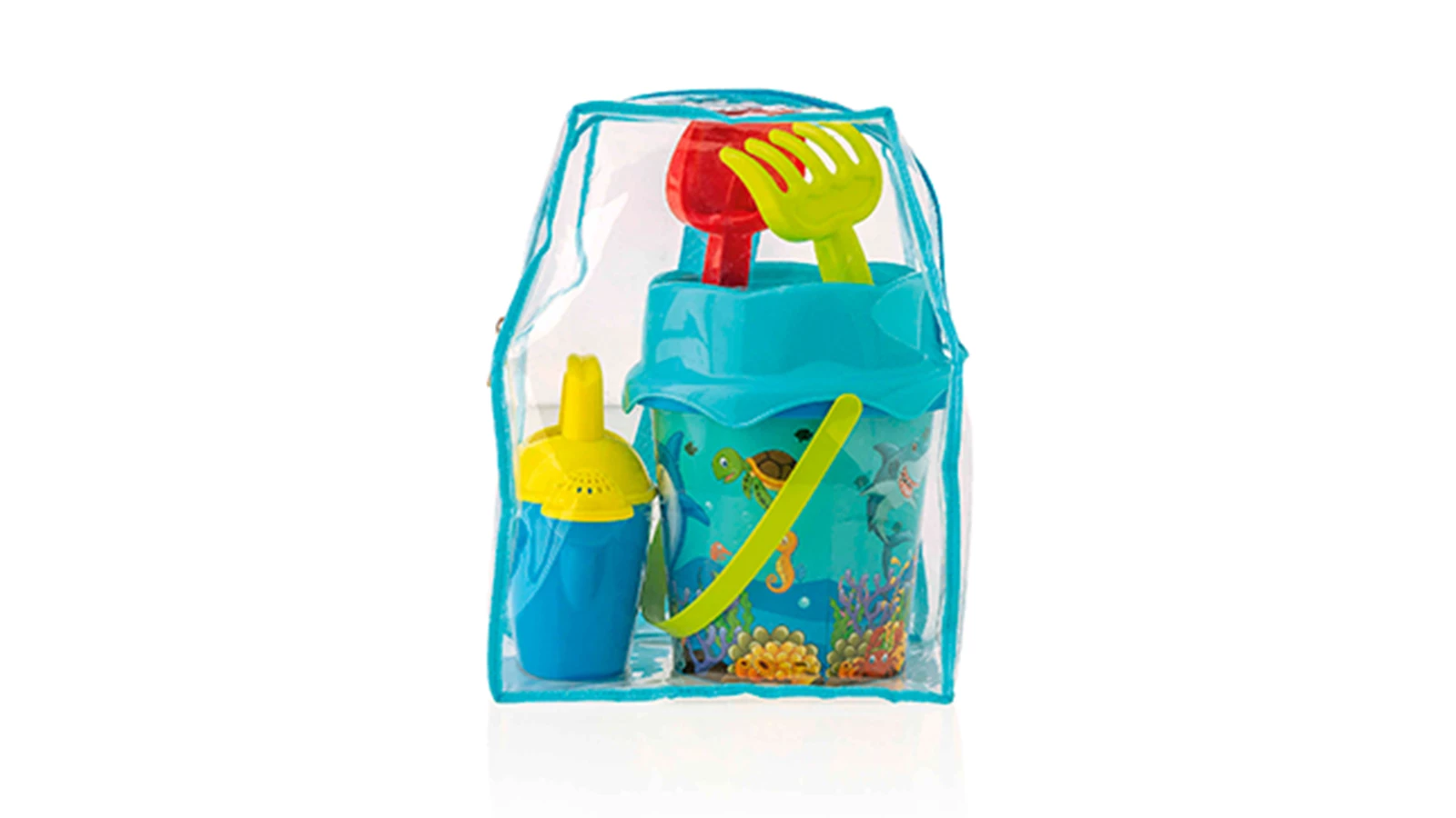 A marca ZOKO tem vários conjuntos de praia com pás e formas para construir os castelos de areia mais divertidos, como esta mochila de praia com 6 acessórios ou este trolley de praia com 7 peças.