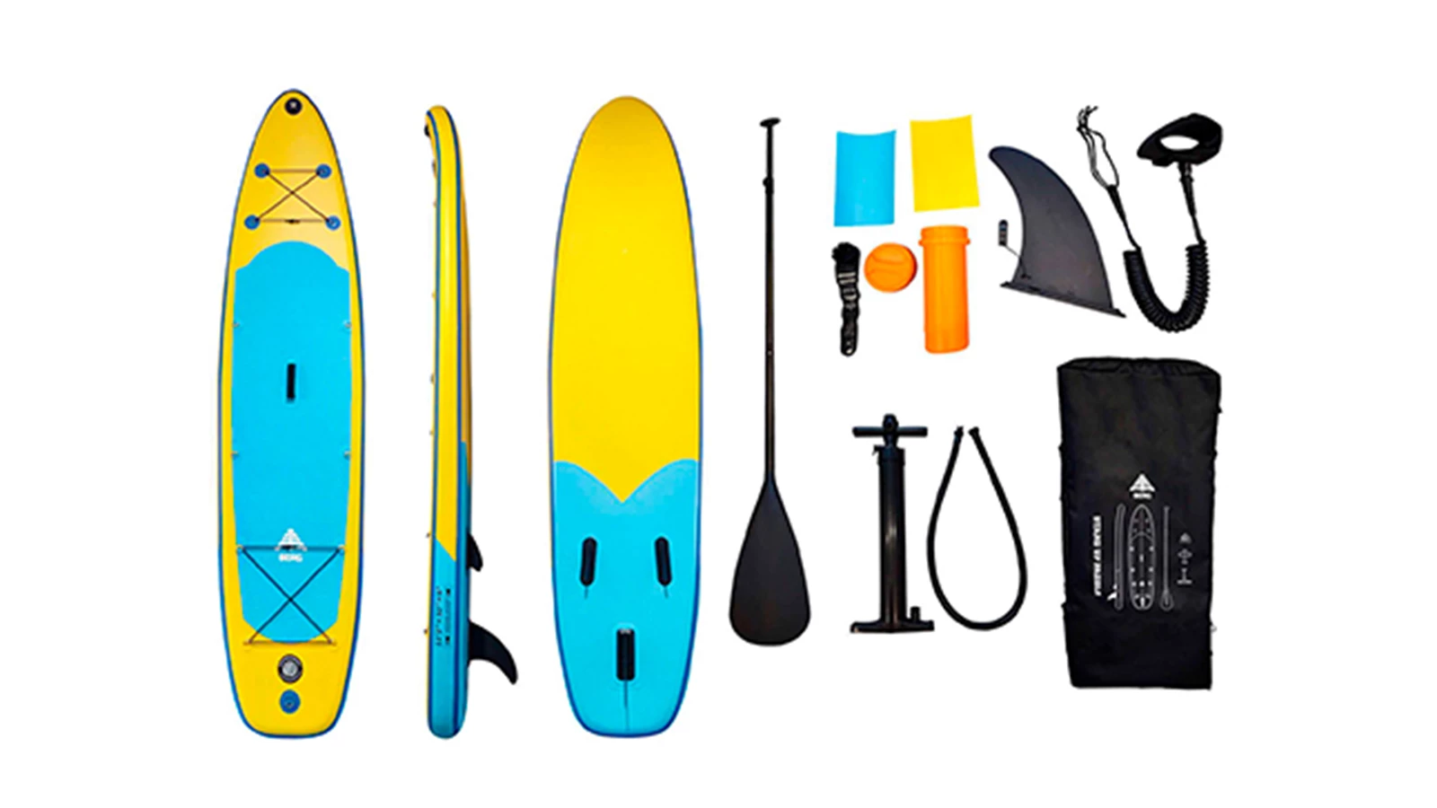 Está na hora de aproveitar as ondas e esta prancha de paddle insuflável é ideal para principiantes. Vem também com uma bolsa para transportar a prancha comodamente no carro e enchê-la na praia.