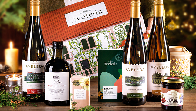 - Cabaz nº 23 (200€): uma seleção distinta com vinho tinto Vale D. Maria, espumante Aguieira, Moscatel Roxo Villa Alvor e Porto Vintage Vale D. Maria. Acompanha queijos Quinta da Aveleda, salpicão Bísaro, bolachas artesanais, mel, azeite, chocolates e patês. Traz ainda acessórios exclusivos (saca-rolhas e manga de frio) e um voucher de visita à Quinta da Aveleda.