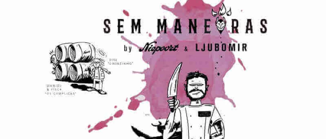 Dirk Niepoort, o seu filho Daniel Niepoort, enólogo neste projeto, e a cúmplice Pisca, unem forças com Ljubomir numa “luta” sem igual. O vinho “Sem Maneiras” resulta da mistura de sotaques e sabores, aromas e ingredientes, que aproxima o copo do tacho e a faca da garrafa.