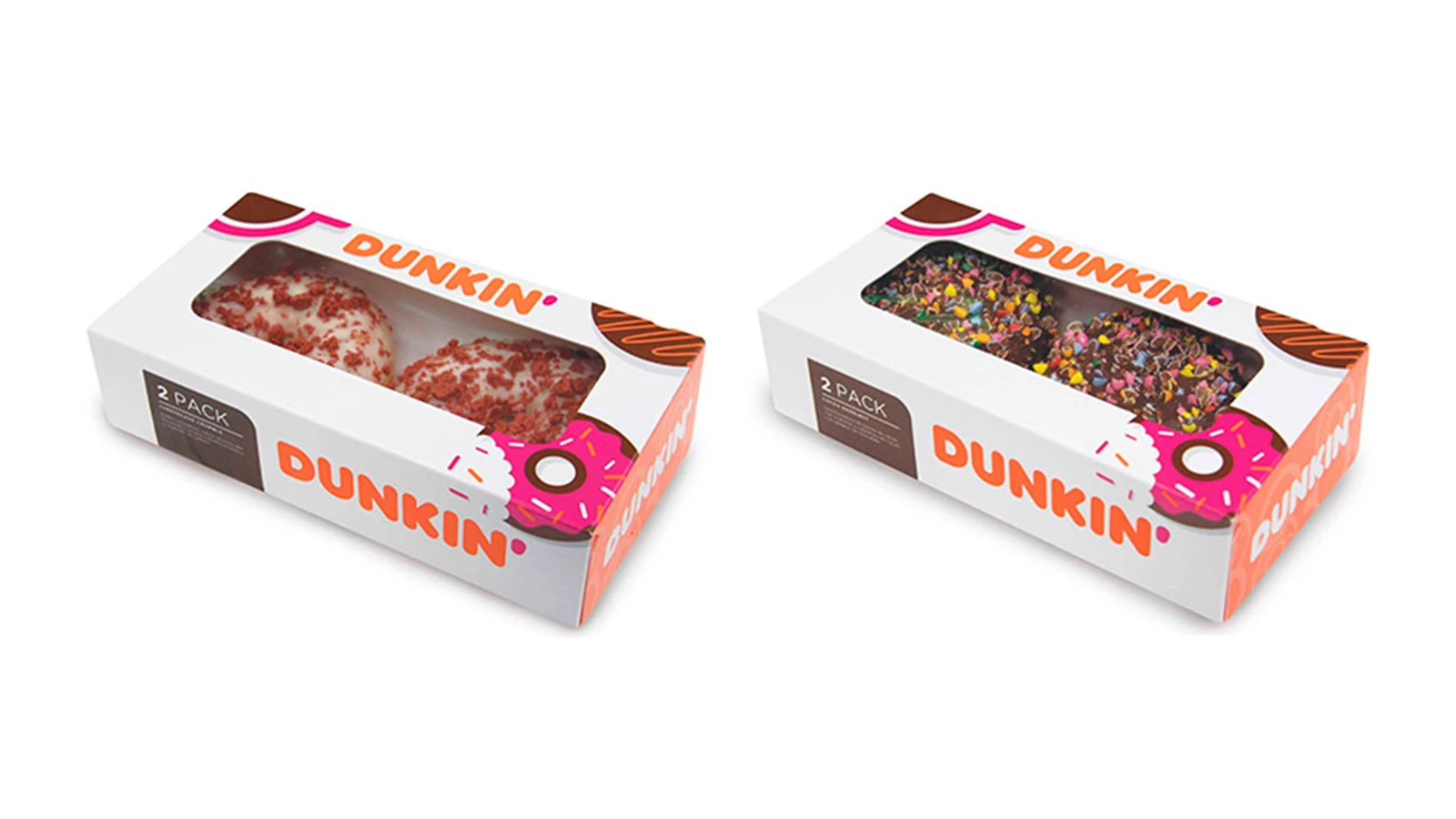O “Boston Kreme” é recheado com creme e com topping de chocolate. Já o "Strawberry Sprinkle" tem um recheio de morango e topping colorido.