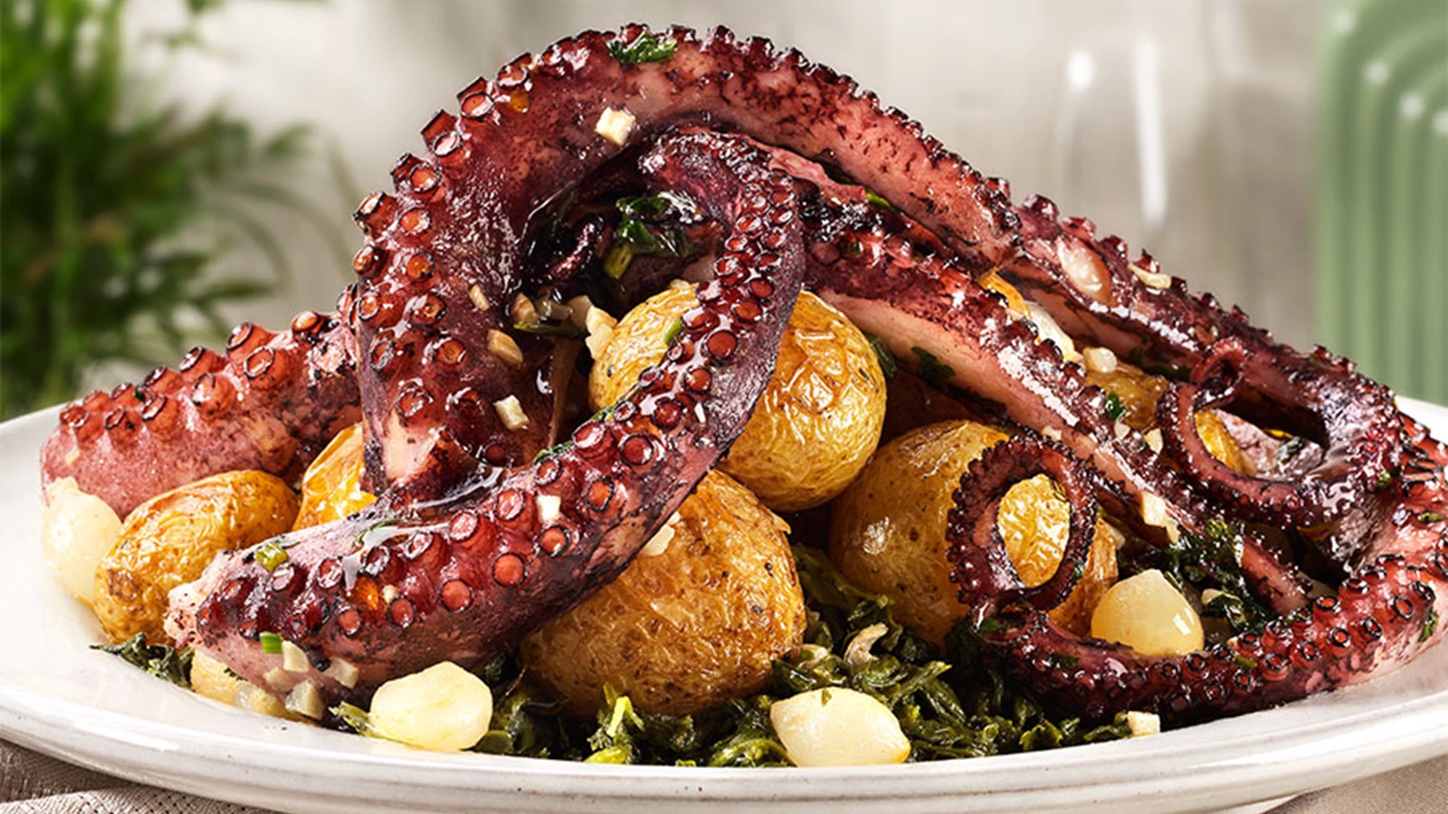 Outro dos pratos estrela da Páscoa e que pode encomendar no Take Away da Cozinha Continente. O Polvo à Lagareiro – com batatas, cebolinhas e grelos salteados – é uma das sugestões imperdíveis do chef André para o almoço da Páscoa. Ao servir, regue com um generoso fio de azeite, azeitonas pretas e polvilhe com salsa picada.