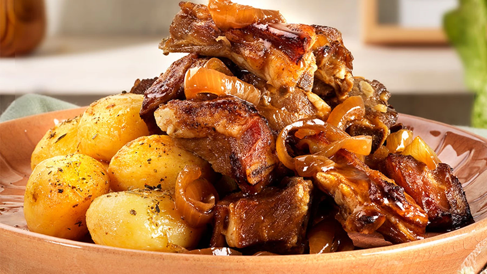 Cabrito assado com batatas assadas