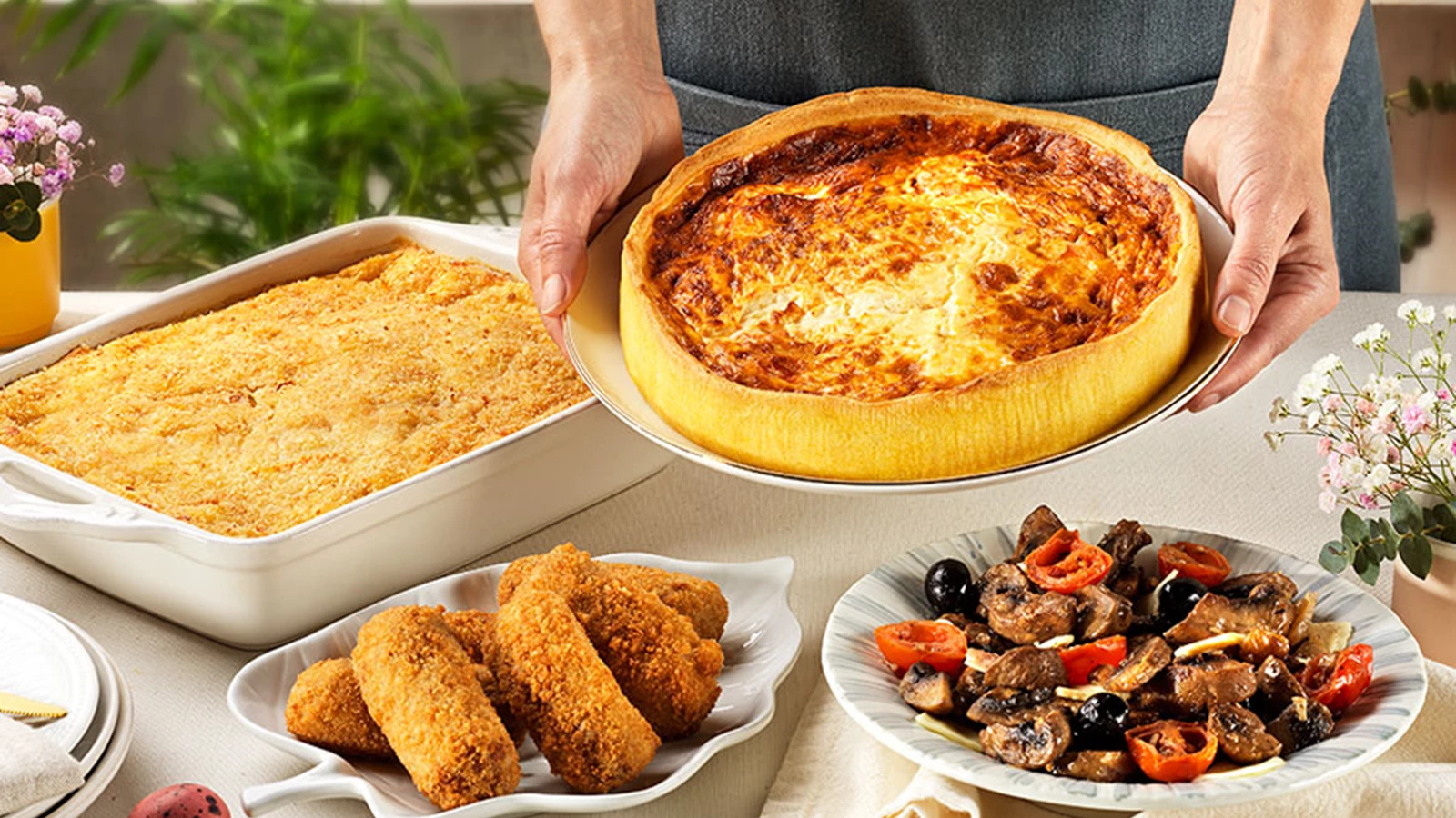 Os almoços de Páscoa em família são sinónimo de mesa farta, por isso conheça os saborosos acompanhamentos. Do Puré de Batata com Cogumelos e Pesto de Trufa, ao Arroz Basmati de Legumes, o Gratinado de Legumes com Ovo e Queijo Curado, e às clássicas Batatas Assadas ou as deliciosas Migas de Grelos, não vão faltar acompanhamentos saborosos para rechear a sua mesa de Páscoa.