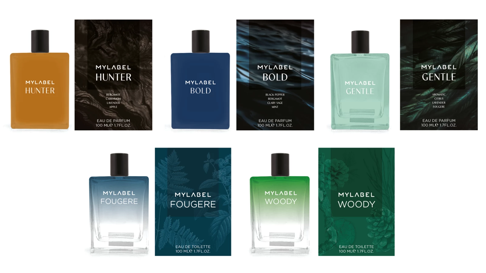 - Perfume Homem MyLABEL Gentle, um perfume aromático e cítrico, com notas de lavanda e fougère;