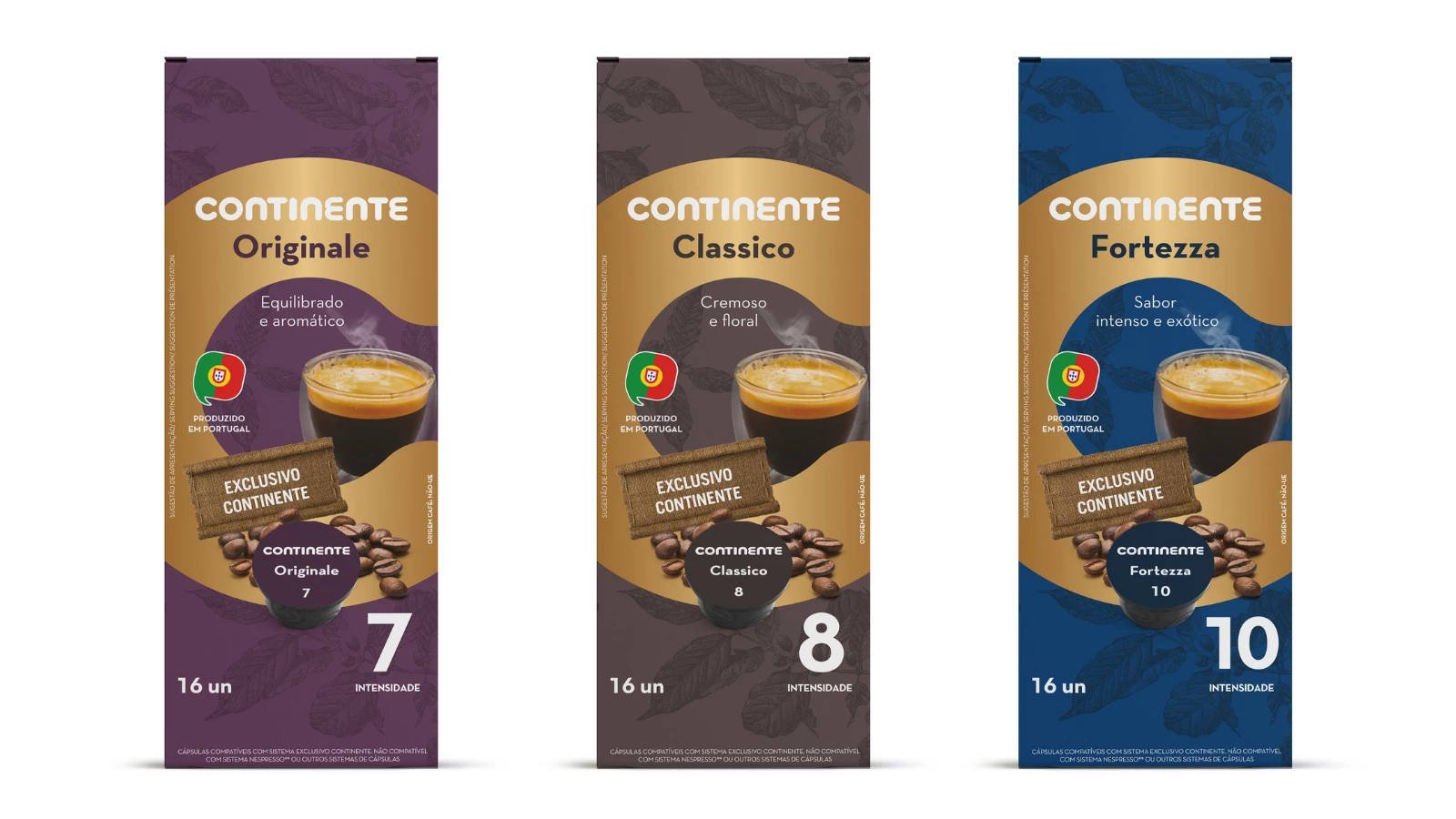 As cápsulas de café, compatíveis com a máquina de café do sistema exclusivo Continente, estão disponíveis em 9 variedades diferentes: Decaffeinato, Intenso Decaffeinato, Leggero, Originale, Clássico, Fortezza, com 16 unidades de cápsulas cada, a 3,65€ e ainda um conjunto de café de origem – Etiópia, Colômbia e Índia com 10 unidades de cápsulas cada, a 2,49€.