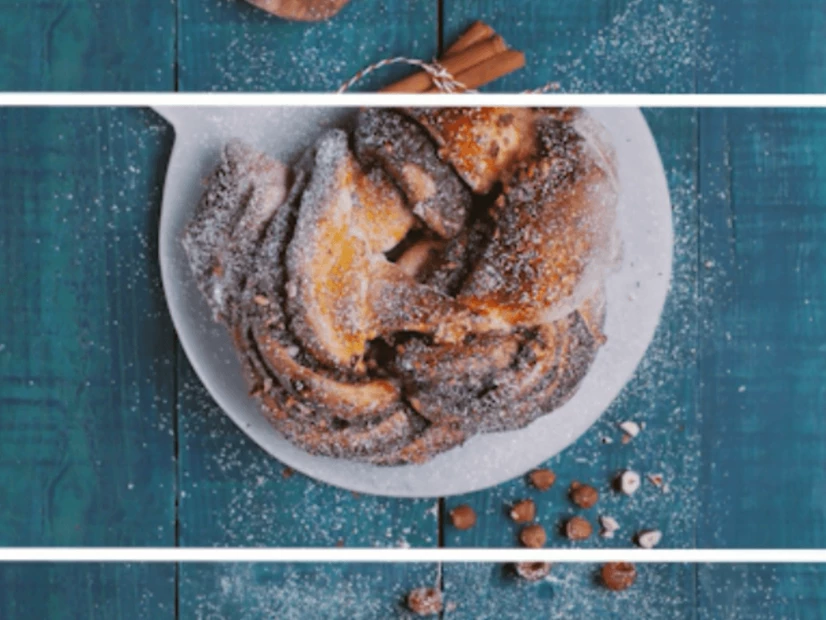 Barre o retângulo com o creme de avelãs e polvilhe com avelãs picadas. Enrole formando um rolo.