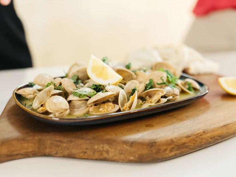 Aromatize com coentros e deixe cozinhar com o tacho tapado, até as conchas abrirem.