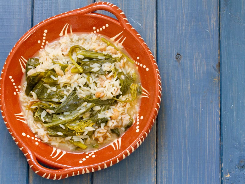 Acompanhe o arroz de grelos de nabo com peixe ou carne e sirva.