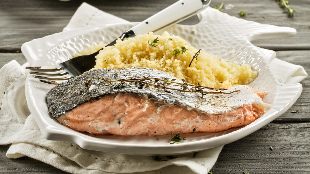 Acompanhe os bifes de atum com as batatas assadas.