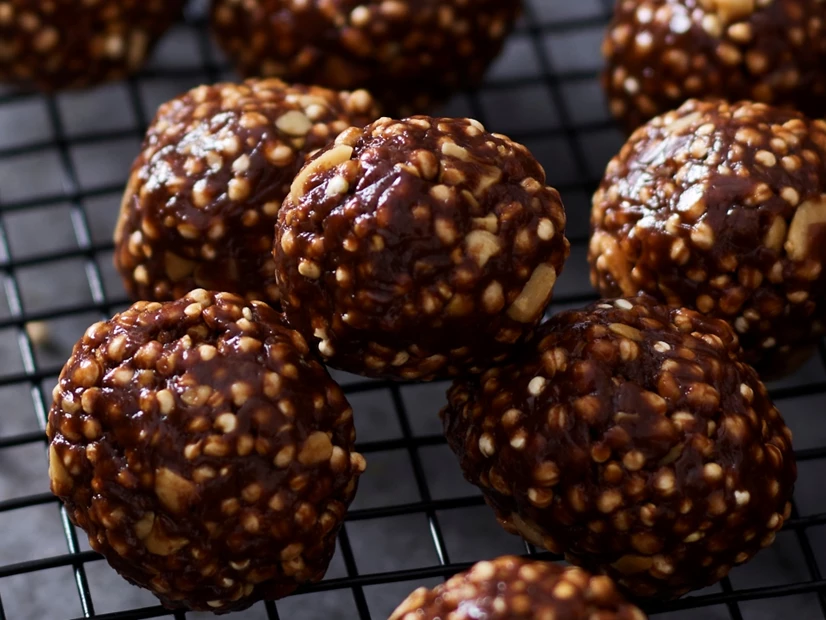 Aprenda esta deliciosa receita de bolinhas de cacau e manteiga de amendoim. Um snack rápido e delicioso!