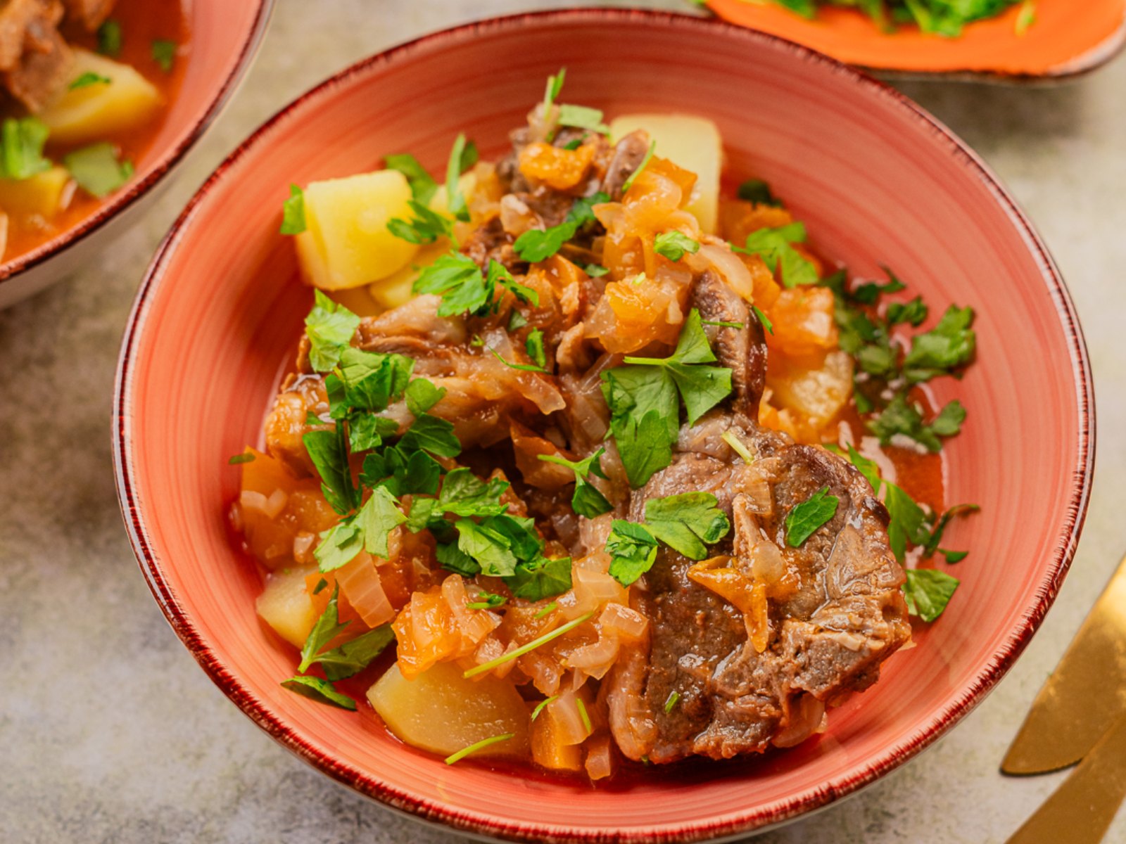 Adicione as folhas de louro partidas ao meio e leve ao forno a 180ºc por 45 a 60 minutos até a carne está dourada.