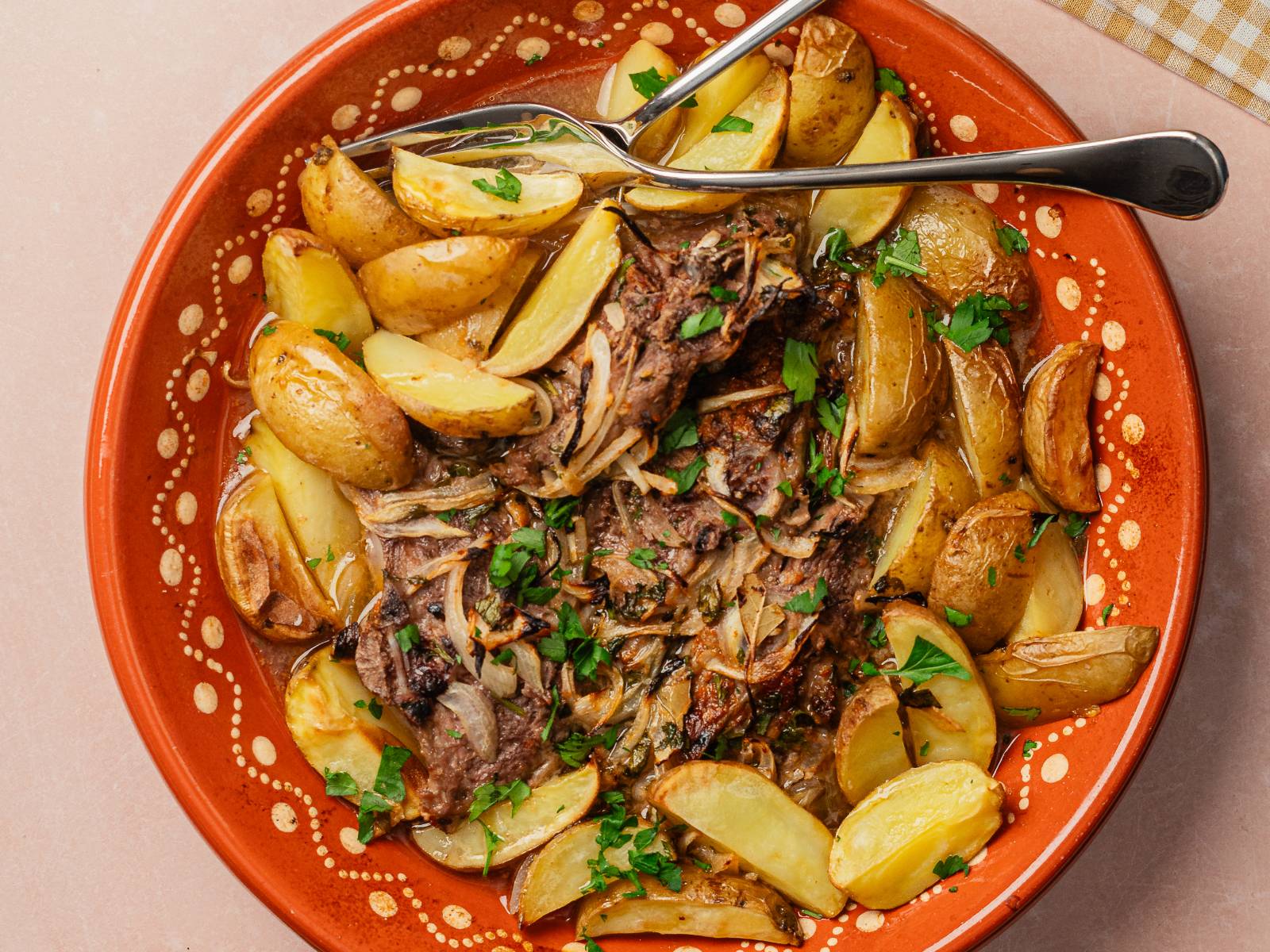 Sirva o arroz de forno juntamente com o borrego assado e decore com salsa picada.