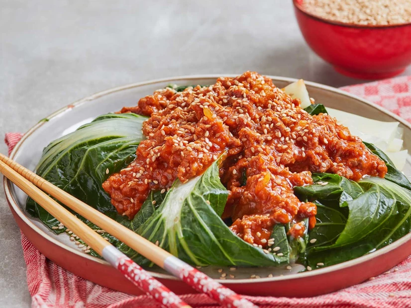 Sirva a couve com a carne picada e polvilhe com sementes