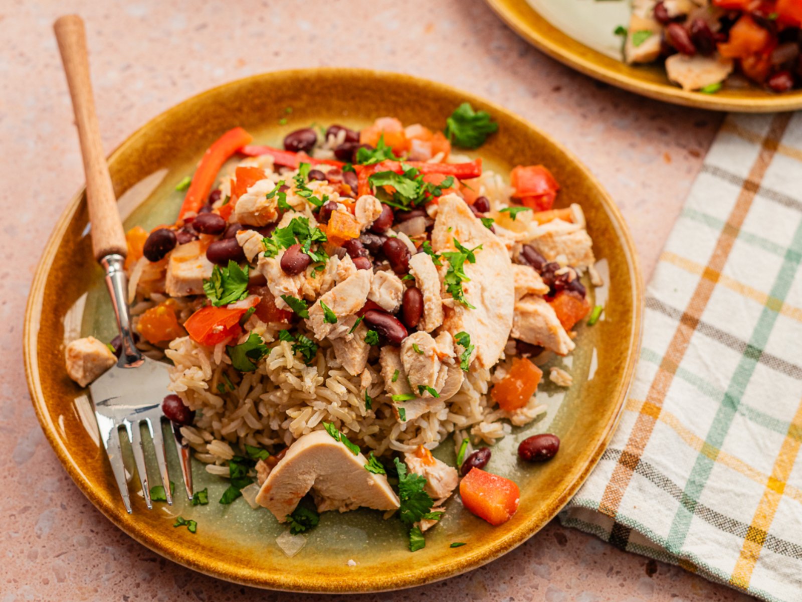 Comece por cortar o peito de frango, as cebolas e os pimentos em quadrados uniformes. Coloque em água as cabeças pequenas dos brócolos e da couve-flor.