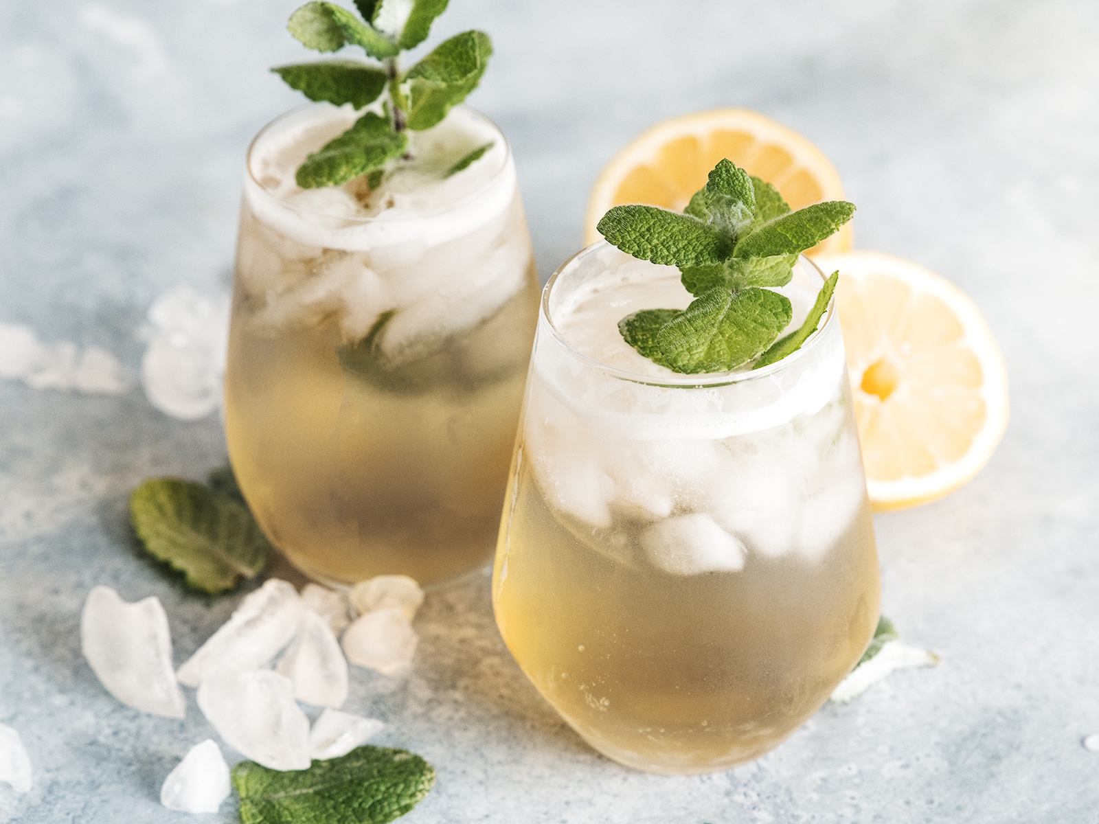 • Divida também a água gaseificada pelos copos e adicione gelo.
