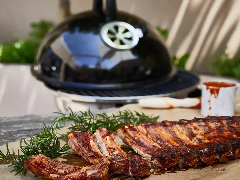 Pincele as costelinhas com o molho barbecue e grelhe na brasa. Corte as costelinhas, uma a uma e sirva com o restante molho.