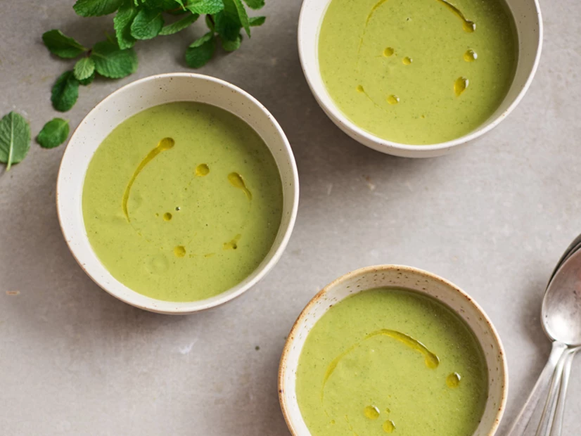 • No final da cozedura coloque as folhas de hortelã e triture até obter um creme suave.