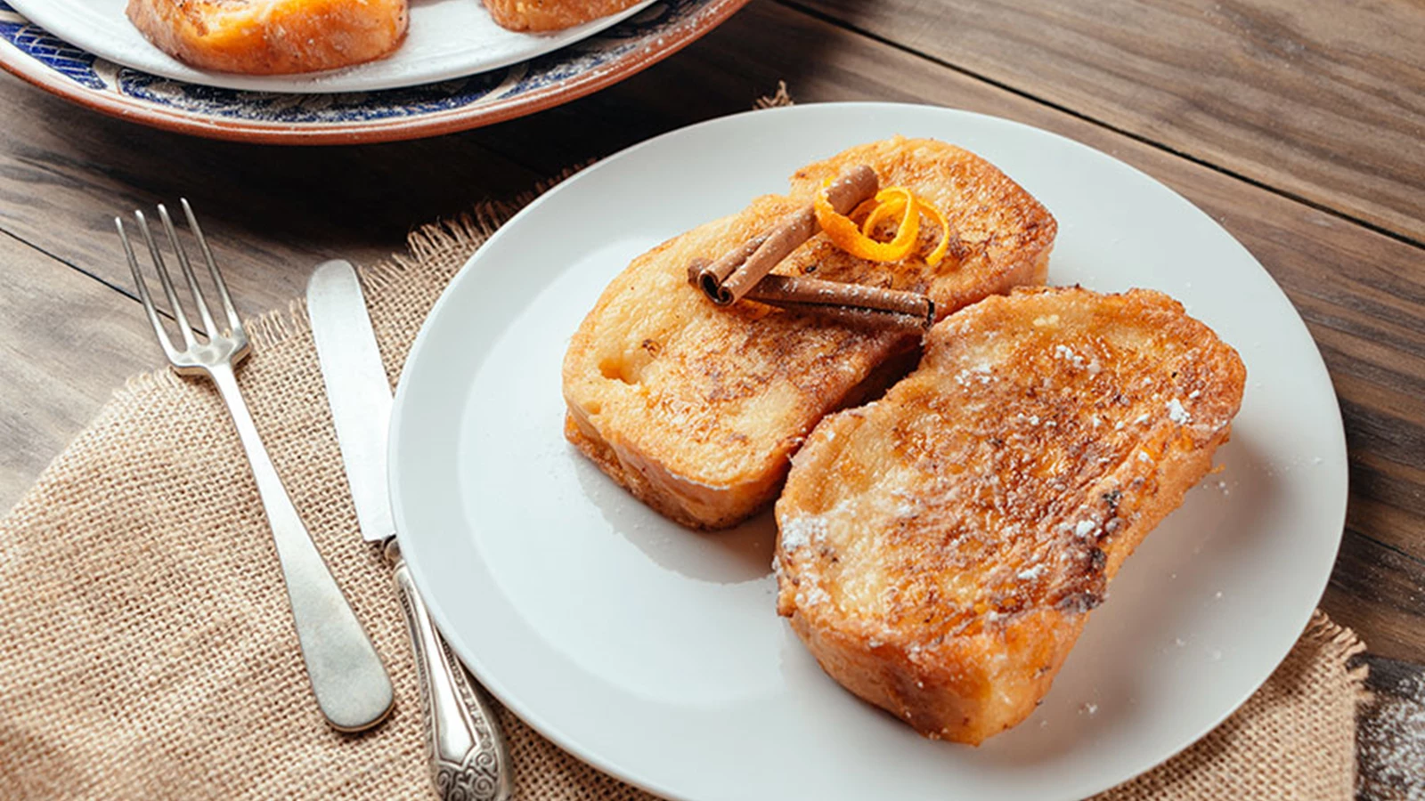 3. Passar as fatias de pão pelos ovos para depois fritá-las em 1l de óleo.