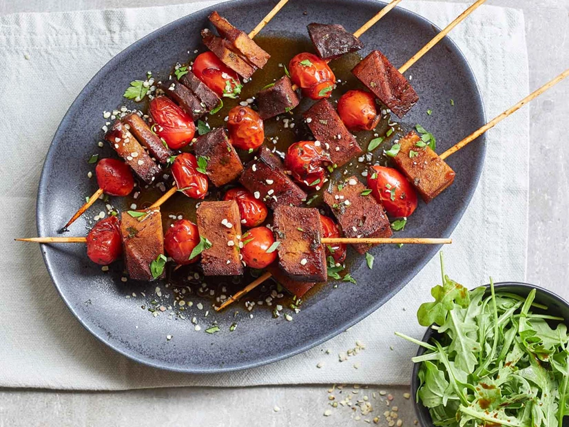 • Faça espetadas com 3 ou 4 quadrados de seitan.